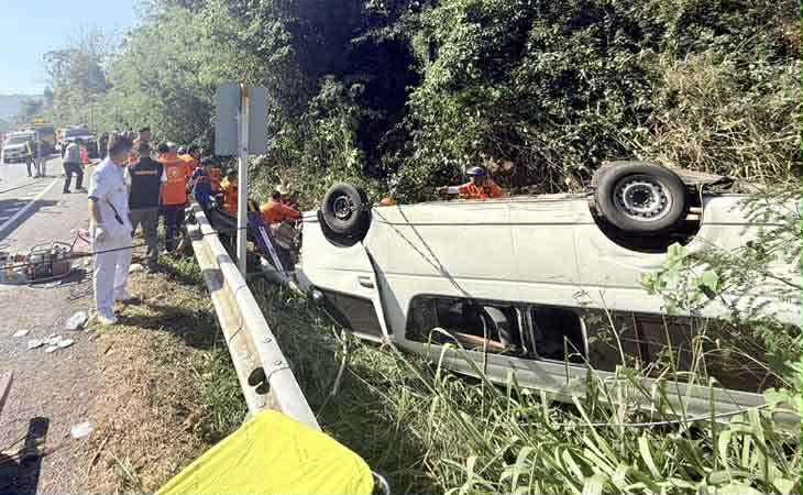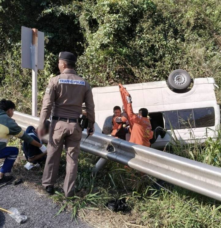 วันที่ 5 มกราคม 2569 เวลา 09.00 น. เกิดเหตุรถตู้โดยสารไม่ประจำทาง ยี่ห้อโตโยต้า สีขาว เลขทะเบียน ฮภ 7893 กทม. เสียหลักชนเสาไฟฟ้าส่องสว่างและการ์ดเรล ก่อนพลิกคว่ำตกข้างทางบริเวณโค้งสถานีวิจัยและฝึกนิสิตวนศาสตร์ ม.เกษตรศาสตร์ บ้านห้วยน้ำเค็ม หมู่ 11 ต.อุดมทรัพย์ อ.วังน้ำเขียว บนหลักกิโลเมตร 243+100 ทางหลวงหมายเลข 304 ถ.ราชสีมา-กบินทร์บุรี