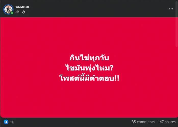 สรุปคือ ไข่ไม่ใช่อาหารที่ควรถูกกลัว แต่เป็นอาหารพื้นฐานที่ร่างกายออกแบบมาให้ใช้ได้ดี ปัญหาไม่ได้อยู่ที่ “กินไข่” แต่อยู่ที่ “กินไข่คู่กับอะไร” ถ้ากินไข่ต้ม ไข่นึ่ง ไข่ตุ๋น คู่ผักและอาหารจริง ไข่จะช่วยซ่อมร่างกายมากกว่าทำร้าย แต่ถ้ากินคู่ของทอด น้ำหวาน และอาหารแปรรูป แบบนั้นต่อให้ไม่กินไข่ ไขมันก็พังอยู่ดีครับ เริ่มแก้ความเข้าใจเรื่องไข่ใหม่ สุขภาพจะเบาขึ้นกว่าที่คิดครับ