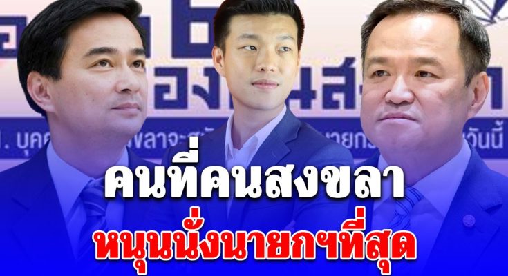 จากการสำรวจเมื่อถามถึงบุคคลที่คนสงขลาจะสนับสนุนให้เป็นนายกรัฐมนตรีในวันนี้ พบ