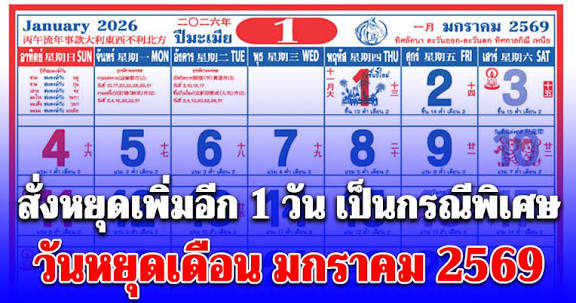 วันศุกร์ที่ 2 มกราคม 2569 : วันหยุดพิเศษ