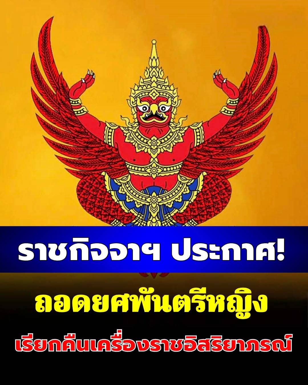 ราชกิจจาฯ ประกาศสั่งฟ้าผ่า ถอดยศพันตรีหญิง เรียกคืนเครื่องราชอิสริยาภรณ์